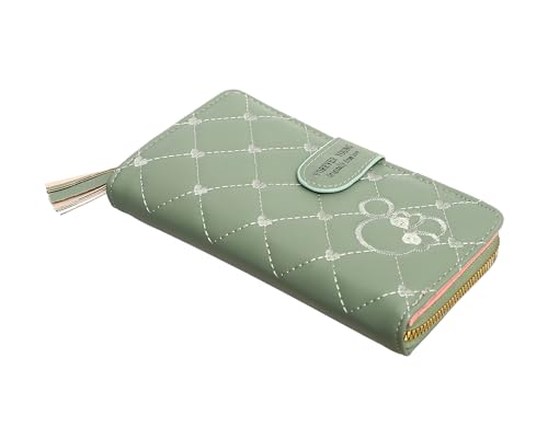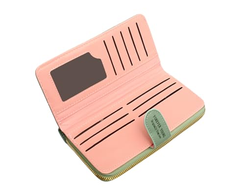 Dragon - محفظة جلد كبيرة ثنائية الطي مع جيب بسوستة وحامل كروت عمل للنساء - أخضر مينت