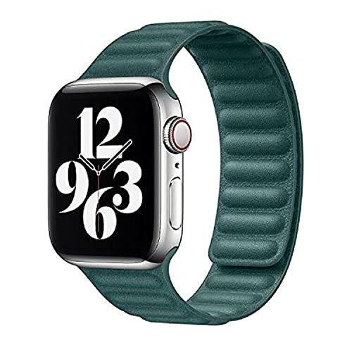 Generic - سوار جلد مقاس 42 و44 ملم بحلقات وقفل مغناطيس لساعة آبل - أخضر