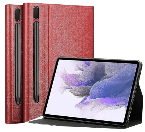 Generic - جراب بتغطية كاملة متوافق مع سامسونج جالاكسي تاب S8 بلس 2022 - S7 2020 12.4 بوصة غطاء قلاب من الجلد حامل في الظهر ناعم البولي يوريثين الحراري لون احمر