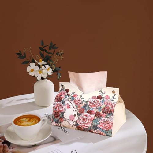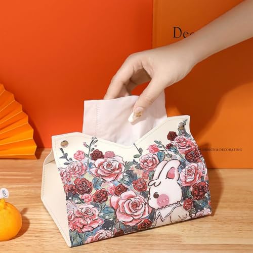 KASTWAVE - غطاء علبة مناديل من الجلد الصناعي، غطاء علبة مناديل من جلد البولي يوريثين عالي الجودة، حامل مناديل للسيارة، حامل مناشف ورقية، نمط وردي، لغرفة المعيشة، غرفة النوم، الحمام، خزانة الملابس، غرفة الطعام