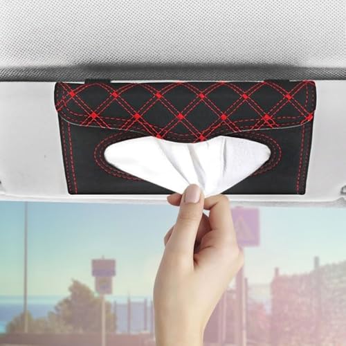 Generic - علبة مناديل من الجلد للسيارة او المنزل / موديل WWX10 – لون اسود * احمر