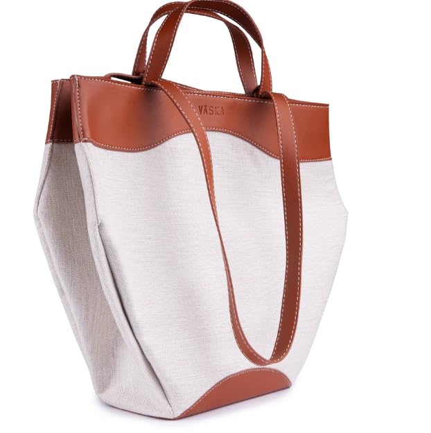 Generic - شنطة يد كبيرة توت من الجلد بلونين ابيض وبني، شنطة كتف بسعة كبيرة