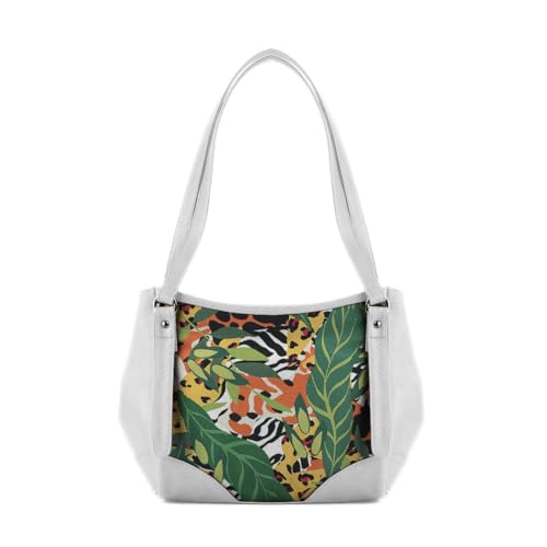 Generic - شنطة يد كبيرة توت من الجلد مع لوحة مموهة، لون أبيض وأخضر، شنطة يد عصرية