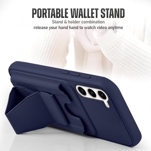 ELMO3EZZ - جراب خلفي من الجلد بإطار من بلاستيك البولي يوريثين المقاوم للحرارة، جراب حماية مضاد للصدمات مع مسند لحمل البطاقات متوافق مع موبايل أوبو A5 برو، أزرق
