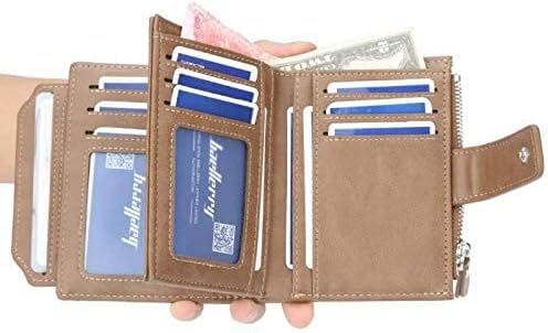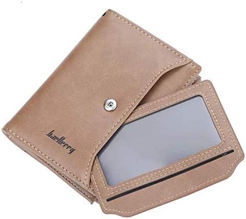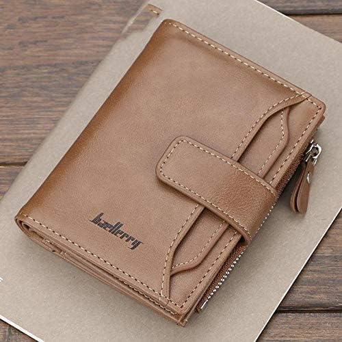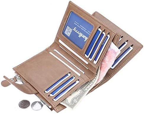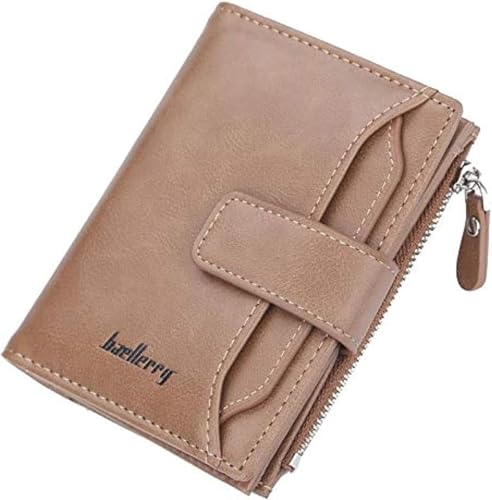 Generic - محفظة جلدية للرجال، لون بيج، تصميم عصري مع سحاب، حافظة بطاقات متعددة الجيوب