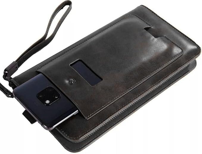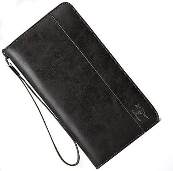 - ١) تصميم عصري: محفظة جلدية أنيقة متعددة الوظائف مع تصميم طويل يجمع بين الأناقة والعملية