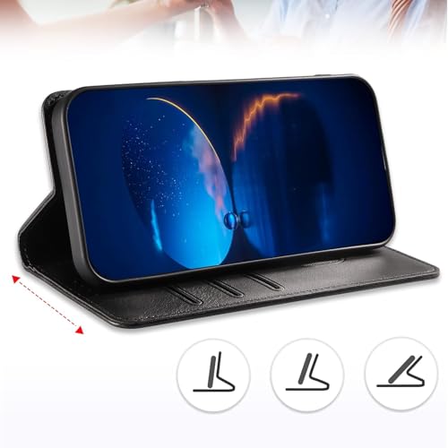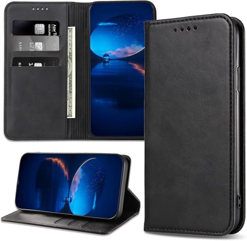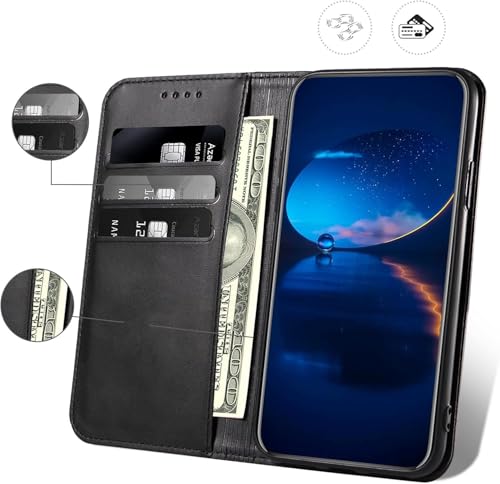Generic - جراب حماية جلد بفتحات سحرية للبطاقات مع حامل وغطاء قلاب مضاد للصدمات لموبايل هونر 90 شبكة الجيل الخامس 5G (لون أسود)