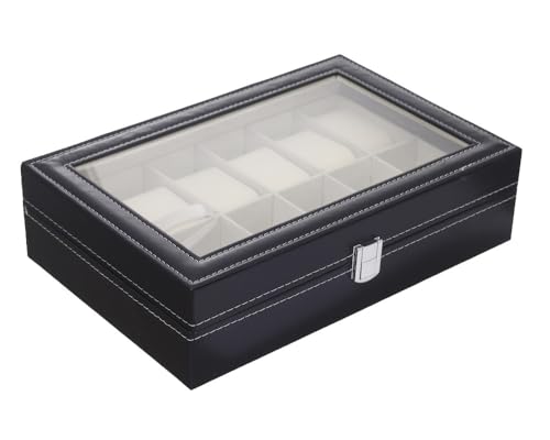 Generic - منظم ساعات جلد مقاس 30 × 20 × 25 سم - اسود
