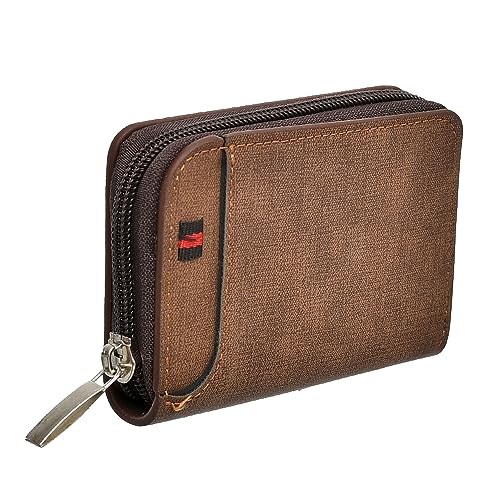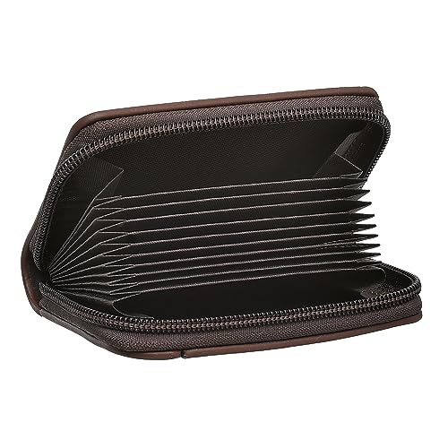 Horse - محفظة جلد بسحاب لحمل البطاقات بحجم صغير وسعة 11 بطاقة للرجال- هافان، بني