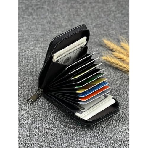 Generic - محفظة جلدية بسحاب لحمل الهوية الشخصية وبطاقة الائتمان للرجال والنساء لون بني