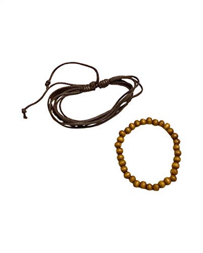 Leatherly - طقم اساور جلد طبيعي طبقات برباط قابل للتعديل للجنسين من ليذرلي - بني