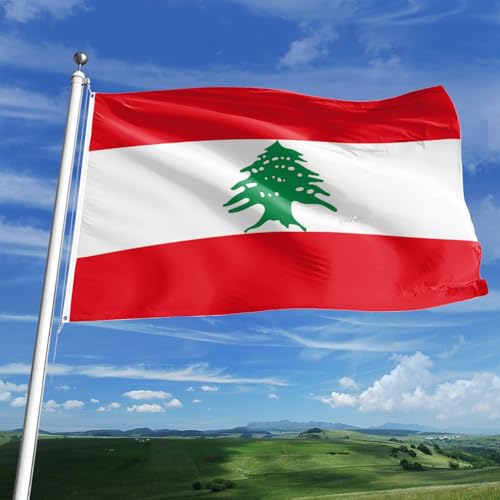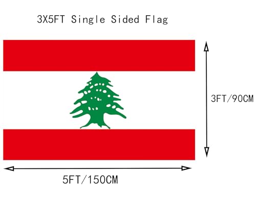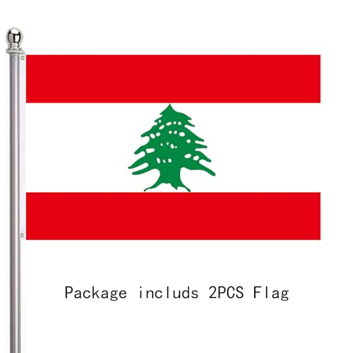 Gzwallxi - اعلام لبنان الوطنية 3 × 5 قدم، علم لبنان 100D بوليستر بالوان زاهية للحديقة الخارجية (قطعتان)