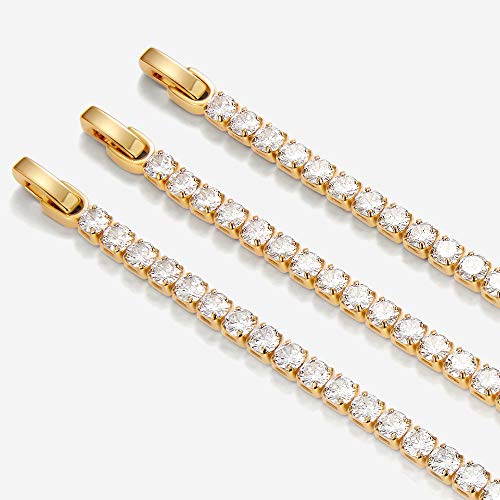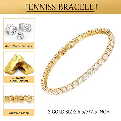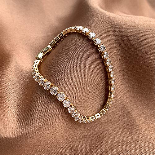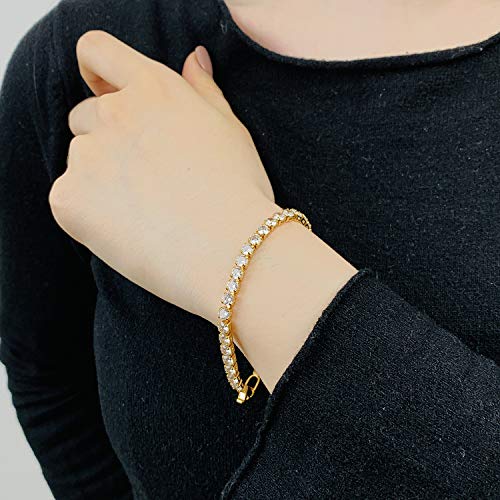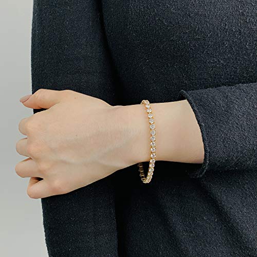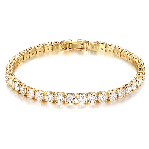 LecAit - سوار تنس من ليك ات للنساء والرجال بفصوص زركونيا مكعب 4 ملم، مطلي بالذهب/ذهب ابيض عيار 14K مقاس 6.5-7.5 بوصة, معدن, غير معروف,