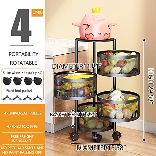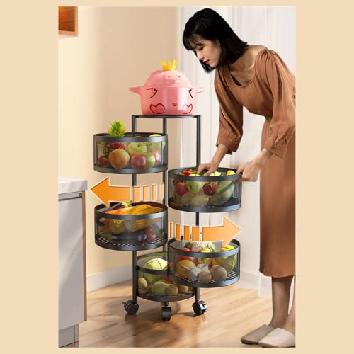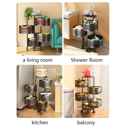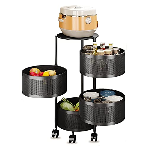 Lecanter - رف تخزين معدني دائري الشكل دوار بـ4 طبقات للفاكهة والخضراوات والوجبات الخفيفة من ليكانتر، سلة قائمة بذاتها على الأرض للمطبخ وغرفة النوم والحمام وغرفة المعيشة