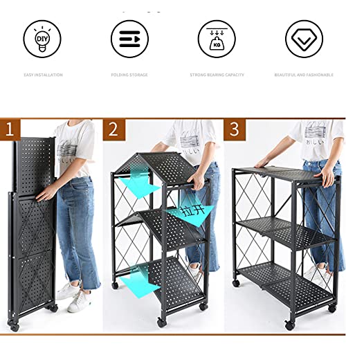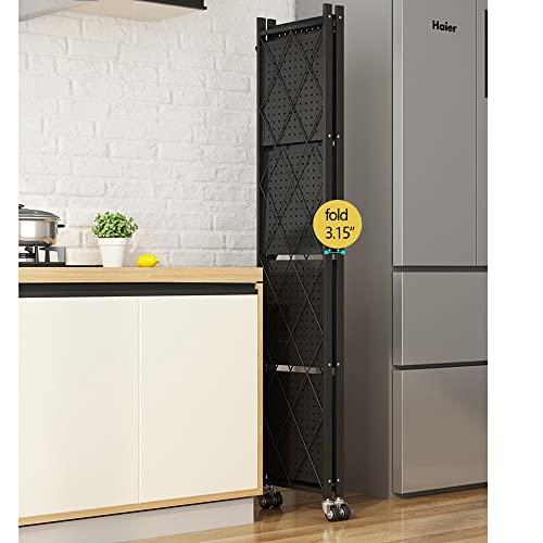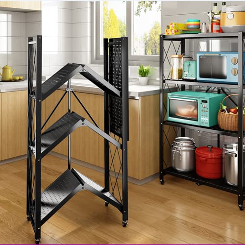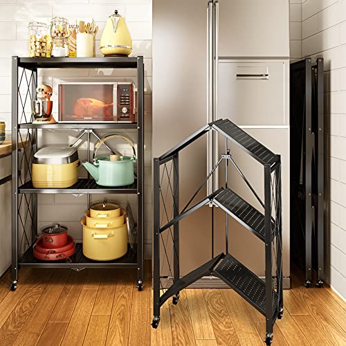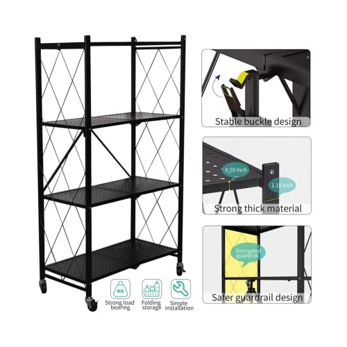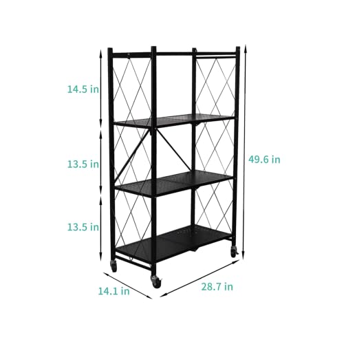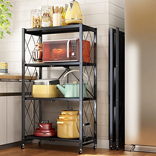 Lecanter - وحدة رفوف قابلة للطي من 4 طبقات ليكانتر رف تخزين معدني قائم بذاته مع سطح طاولة خشب ام دي اف ارفف بدون تجميع عجلات للمراب والمطبخ والخبازين وخزانة المؤن شديدة التحمل