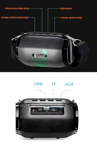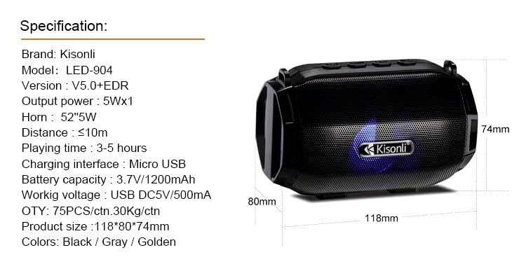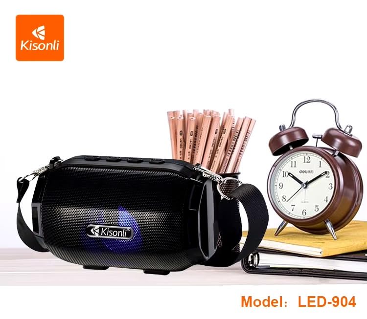 Generic - سماعة صب محمولة - LED-904 -كيسونلي - بقوة 5 وات، بطارية 1200 ميلي امبير، متعددة الوظائف مع إضاءة LED، تشغيل من خلال USB وTF وAUX (أسود)