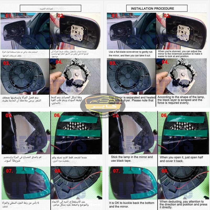 - ✅قم بتركيب/تثبيت إضاءة ليد بشكل السهم خلف زجاج المرآة الخلفية اليسرى/اليمنى، غير مرئي فعليًا عند عدم الاستخدام، ولكنه يضيء بشكل فائق السطوع عند الانعطاف