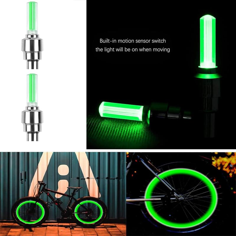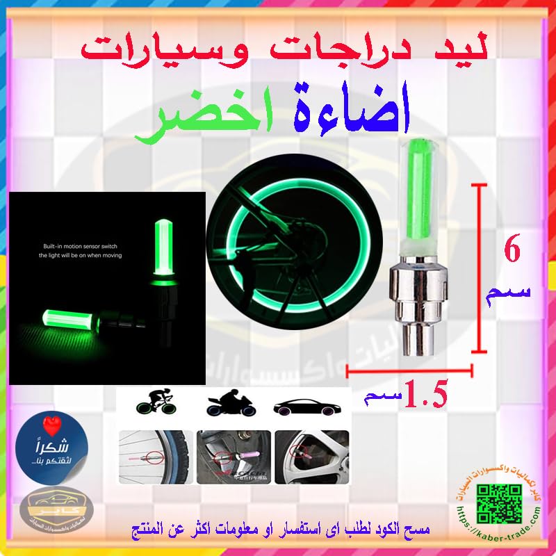 Generic - طقم إضاءة ليد لإطارات الدراجات و السيارات بمستشعر حركة ، غطاء بلف بإضاءة ليد ( لون اخضر - 2 قطعة ) - من كابر تريد