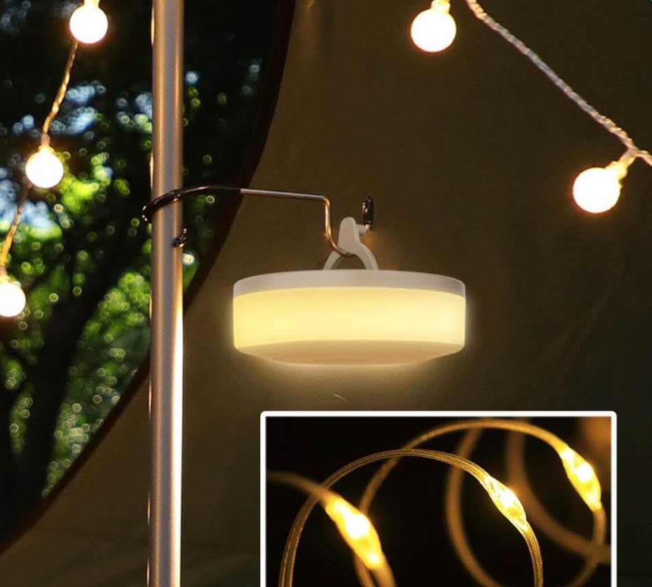 - تصميم متعدد الاستخدامات: مصباح تخييم مدمج مع تصميم خطاف تعليق مثالي للخيام والملاجئ الخارجية ومناطق التخييم