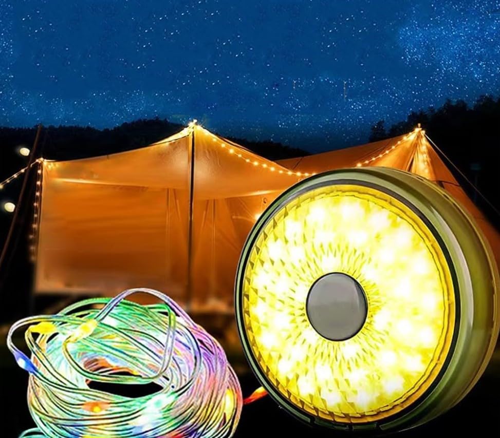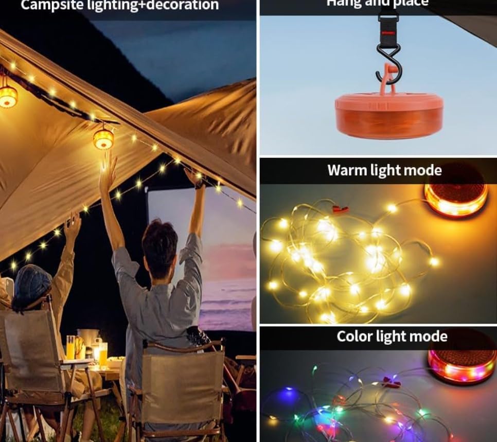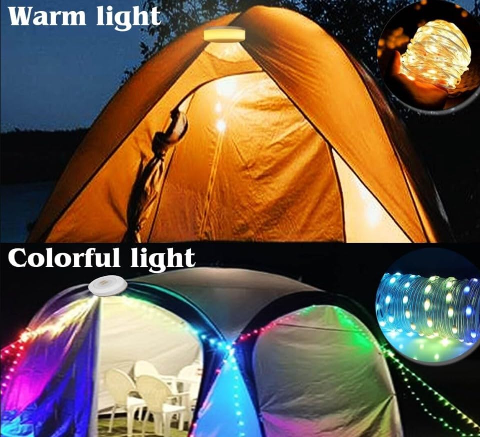 Generic - مصباح LED للتخييم مع وضع مزدوج، شريط اضاءة ابيض دافئ وفضاء لوني ار جي بي للخيمة، يعمل بالبطارية