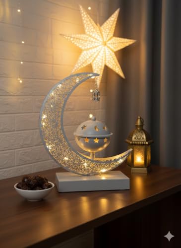 Generic - مبخرة LED بتصميم هلال وفانوس معلق، ديكور إسلامي مضيء، ذهبي وأبيض، 24 سم طول × 15 سم عرض