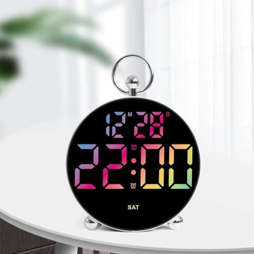Generic - ساعة منبه رقمية LED بشاشة ملونة، ساعة مكتب عصرية مع التاريخ والوقت ودرجة الحرارة - تصميم دائري أنيق (mixed color)