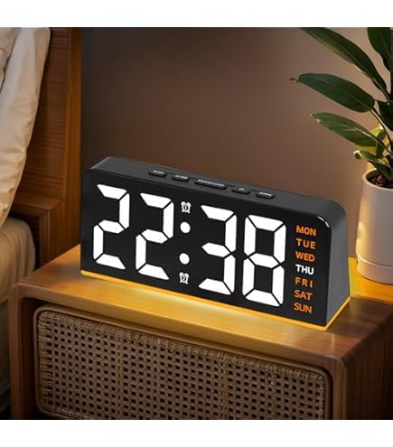 Generic - ساعة منبه رقمية LED بشاشة كبيرة وإضاءة خلفية ملونة – عرض الوقت والتاريخ وأيام الأسبوع – ساعة مكتب/طاولة حديثة مع منبه إلكتروني (orange)
