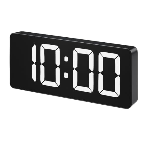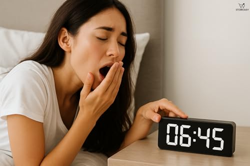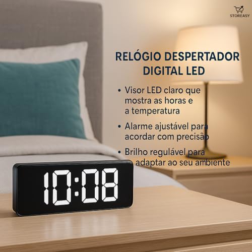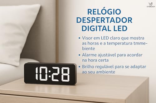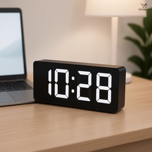 Storeasy - ساعة منبه رقمية LED مع تحكم في درجة الحرارة والصوت - سطوع فائق قابل للتعديل، شاشة 12/24 ساعة لغرفة النوم والمكتب - تخزين