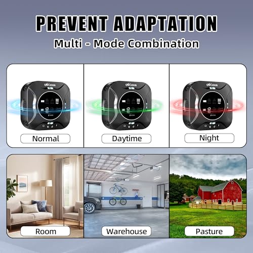 - 【أوضاع متعددة لمناطق مختلفة】 اضبط أوضاع صوتية مختلفة حسب المكان، مما يسبب إزعاجاً للقوارض عن طريق التشويش على سمعها، وتدمير ذاكرة الدماغ، وتحفيز الجهاز العصبي، مما يؤدي لطردهم بعيداً عن المناطق المحمية.