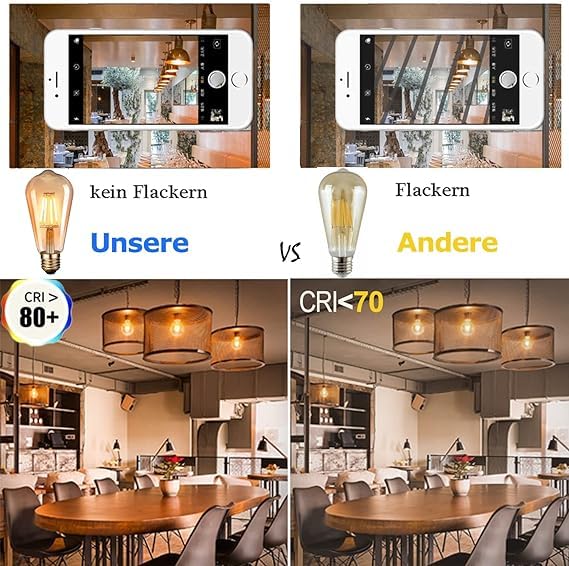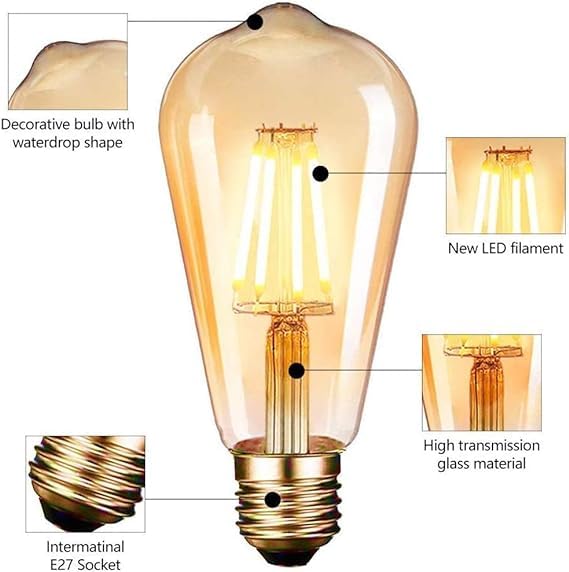 - لمبة ديكور قديمة: مصابيح LED كلاسيكية من اديسون، لون فاتح دافئ وناعم