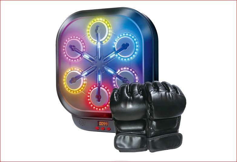 Generic - هدف ملاكمة إلكتروني ليد مع قفازات تدريب ملاكمة مختلطة وشاشة رقمية، لعبة ملاكمة تفاعلية متعددة الألوان - متعة عالية الطاقة مع مكبر صوت بلوتوث - أسود