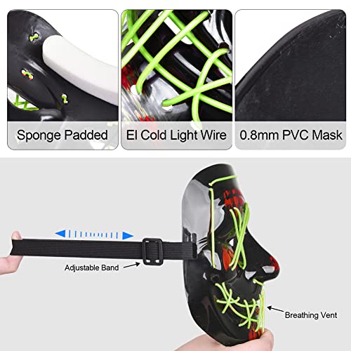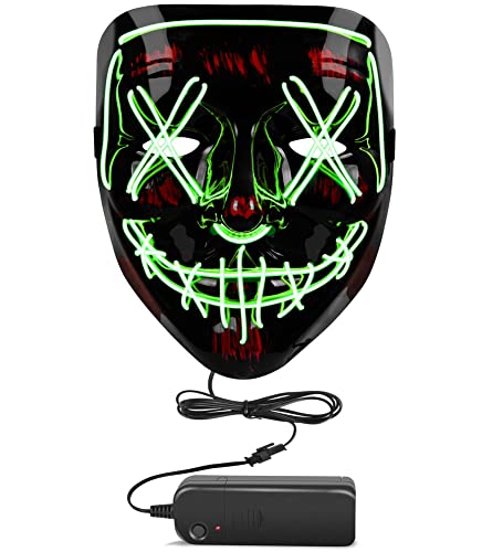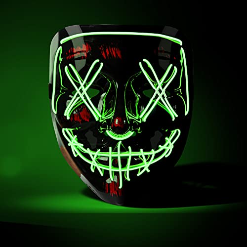 OU-BAND - قناع هالوين بإضاءة LED، قناع حفلات تطهير تنكري، قناع هاكر مخيف للهالوين، قناع وجه مضيء للحفلات التنكرية للرجال والنساء والأطفال، يصلح للكرنفالات، ويمكن تقديمه كهدية