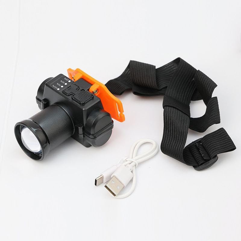 Generic - LED Headlamp with USB Charging, Rechargeable Telescobic Head Torch With Zoom in & Out Light Focus, 1200mAh Battery, ABS Material, Black with Orange Accents
