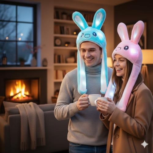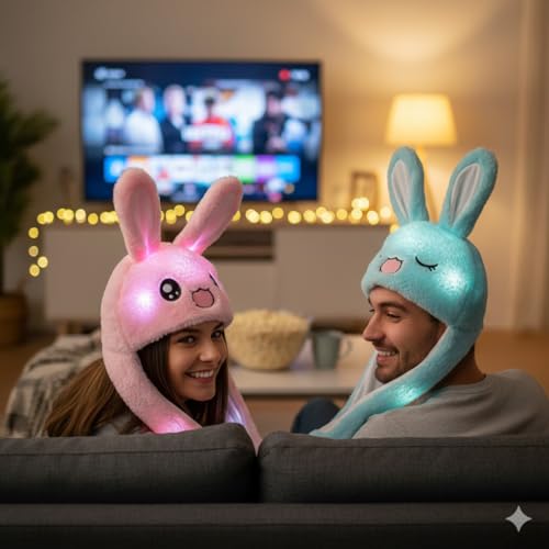 Generic - قبعة أرنب بإضاءة LED، مع أذنين متحركة، ألوان وردي وأزرق، للحفلات والمناسبات