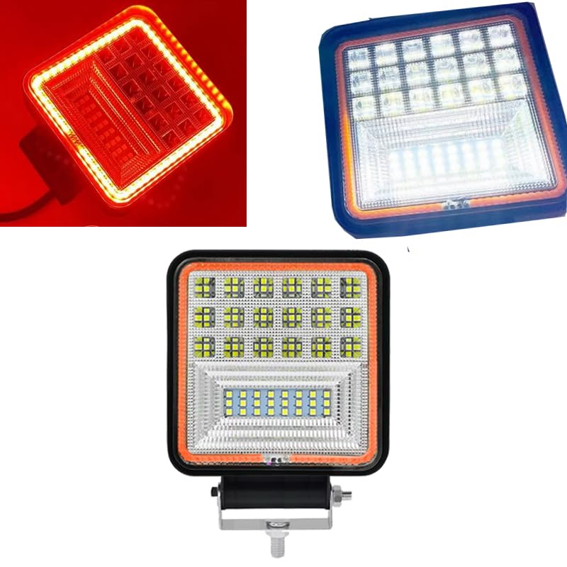 Generic - مصابيح ليد للطرق الوعرة كشافات عالية السطوع ، تنبعث منها ضوء أبيض ساطع . قم بتحسين رؤيتك على الطريق (مربع 42 ليد ، فريم اضاءة احمر ثابت وفلاش) - من كابر تريد