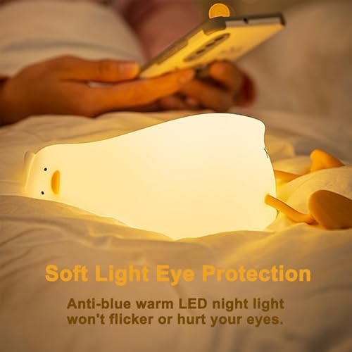 Veryrich - مصباح ليد ليلي على شكل بطة من السيليكون مسطح بثلاثة مستويات للسطوع قابل للتعديل لطيف اسفنجي ويضيء قابل للشحن بجانب السرير مناسب للرضاعة للأطفال وغرف النوم والمكاتب