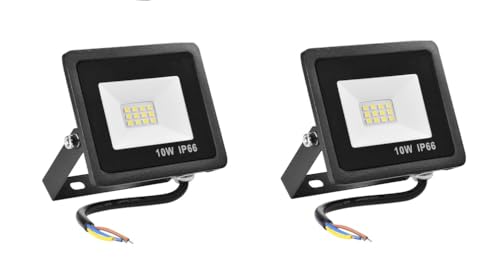 Generic - كشاف LED خارجي ليد بقوة 10 وات، مقاومان للماء IP66، 90 لومن، كشاف LED خارجي قوي للحديقة، المرآب، الفناء، الحظيرة، الفناء (6500 كلفن أبيض ناصع، 10 وات) - عدد 2 قطعه