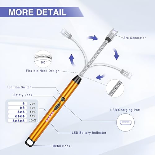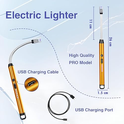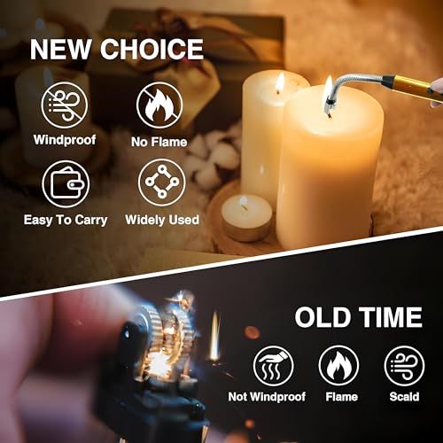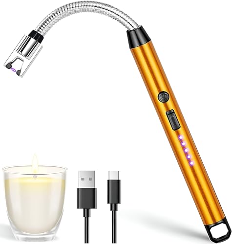 Generic - ولاعة ليد كهربائية مقاومة للرياح بمرونة 360 درجة لإشعال النيران والشموع (ذهبي)