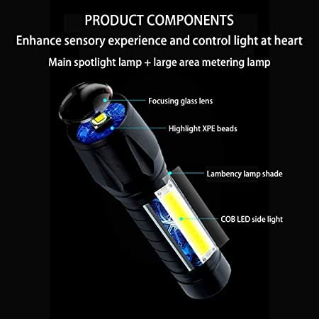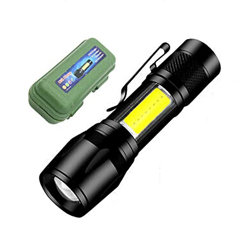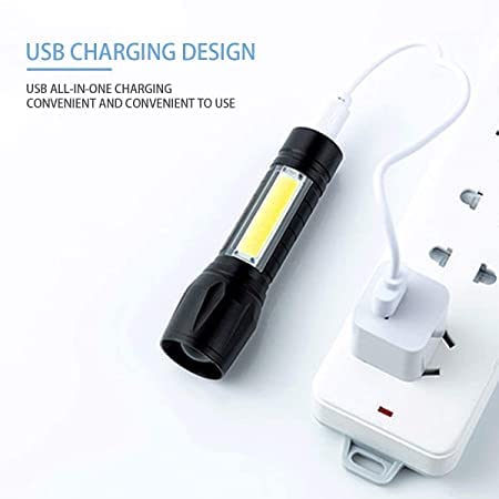 - 【كشاف يدوي قابل لإعادة الشحن】كشاف يدوي عالي الجودة قابل لإعادة الشحن بضوء COB جانبي.