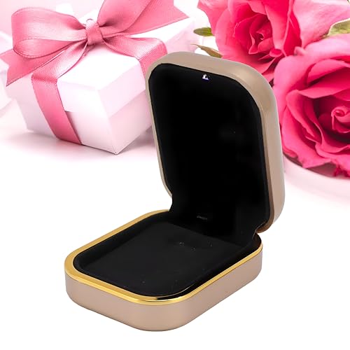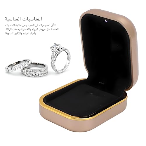Generic - علبة خاتم قطيفة بتصميم قلب مع إضاءة ليد دافئة يضيف لمسة راقية عند تقديم خاتم الزفاف، ذهبي