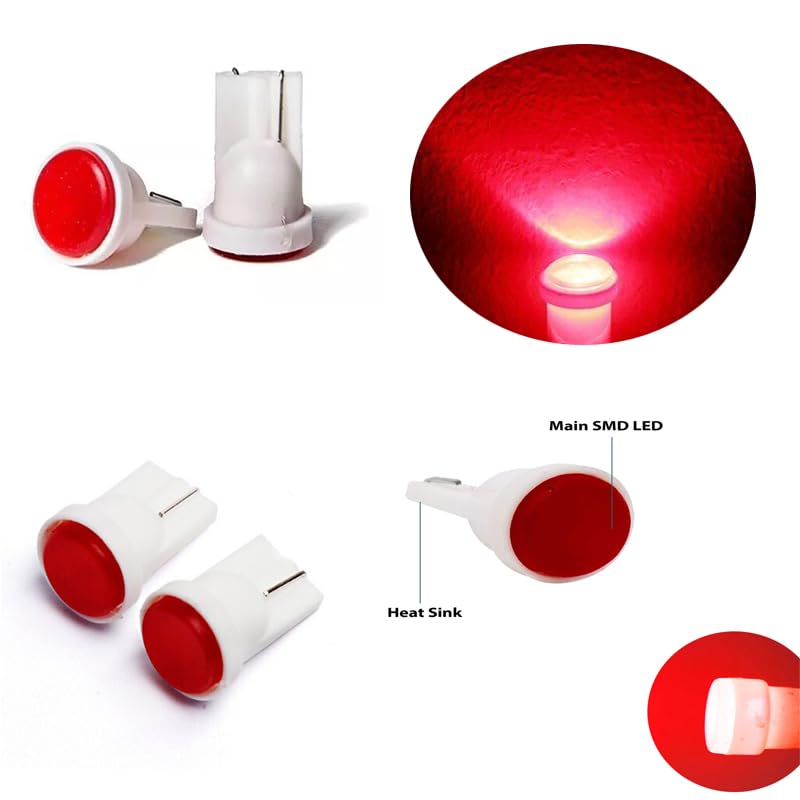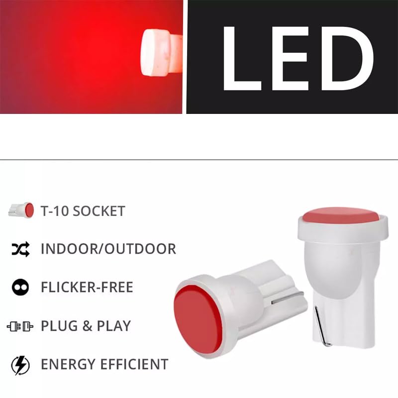 Generic - مصابيح LED SMD T10 قاعدة اسفينية لمصباح وقوف السيارة/ مؤشر جانبي/ مصابيح لوحة ارقام ( COB T10 اضاءة احمر ، 4 قطع ) - من كابر تريد