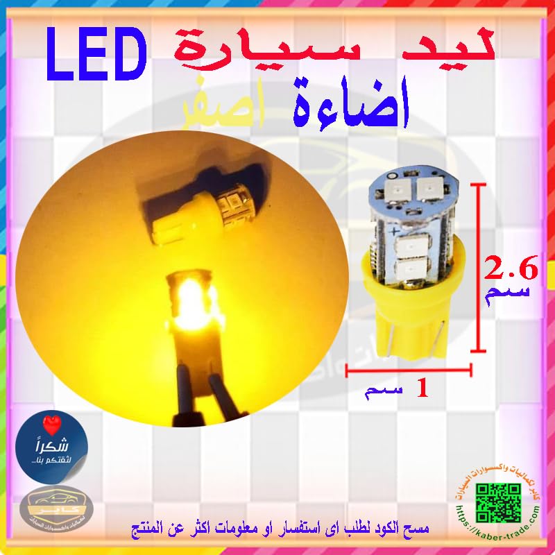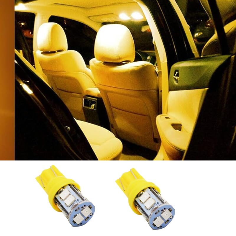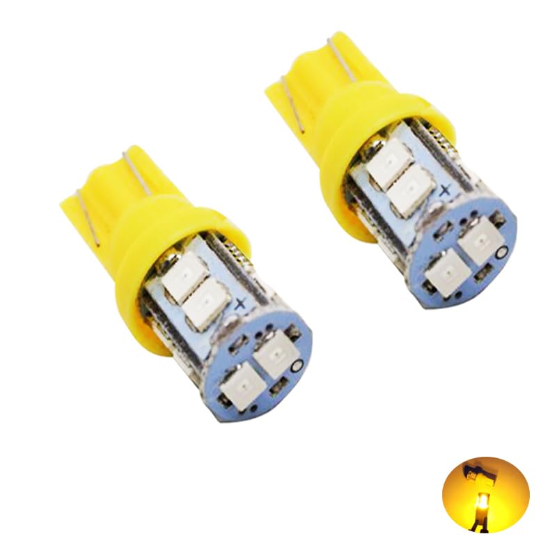 Generic - مصابيح LED SMD T10 قاعدة اسفينية لمصباح وقوف السيارة/ مؤشر جانبي/ مصابيح لوحة ارقام (اضاءة اصفر ، 10 ليد ، 2 قطعة ) - من كابر تريد