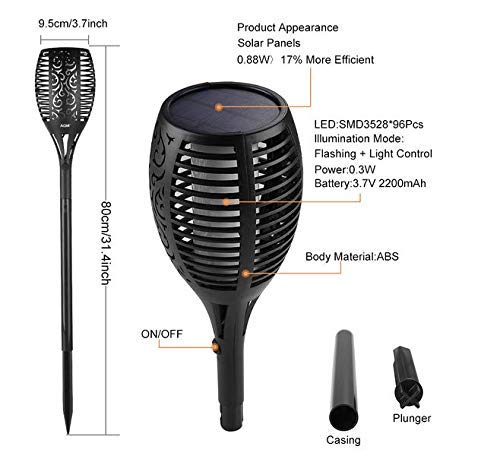 Other - فانوس بإضاءة ليد تشبه اللهب، مصباح حديقة على شكل شمعة يعمل بالطاقة الشمسية، درجة حماية من الأتربة والماء IP65، لإضاءة الممرات الخارجية