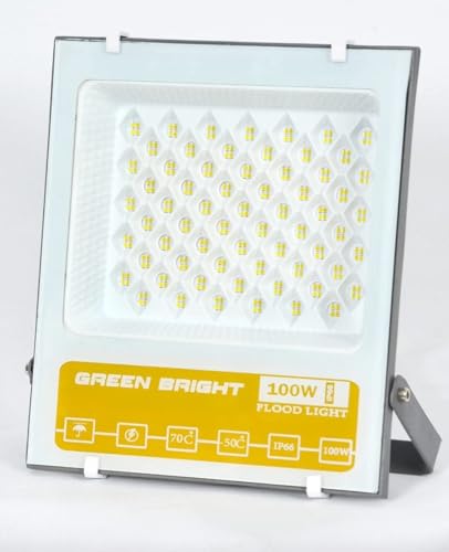 GREEN BRIGHT - لمبة سبوت ليد مقاومة للماء بمعيار IP66، أضواء فلاش ليد للأمن، درجة حرارة اللون 7000 كلفن أبيض بارد، للشرفات والحدائق والتراسات (كبير، 100 واط)