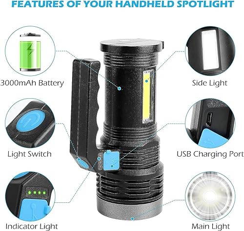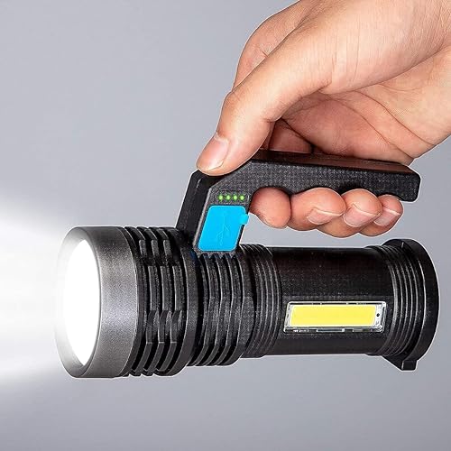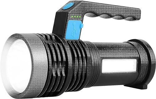 H-Home - مصباح يدوي LED قابل لإعادة الشحن، فانوس إضاءة، لمبة بنظام الرقاقات على اللوح قابلة لإعادة الشحن، مصباح يدوي محمول يدويا بإضاءة قوية 3000 لومن للتخييم والمشي لمسافات طويلة والمنزل والمزرعة والصيد