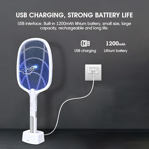 Generic - مضرب يعمل باللمس باضاءة LED - قاتل بعوض قابل لاعادة الشحن 1800mAh مع لوحة لمس LED، وظيفة القتل السريع، حامل شحن، بطارية متينة، قبضة مريحة، لمسة نهائية خضراء، مثالي للاستخدام الداخلي والخارجي.