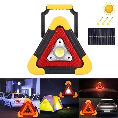 Generic - منبه مثلث LED - جهاز تحذير يعمل بالطاقة الشمسية مع شحن USB، مثلث عاكس مقاوم للطقس للاستخدام في حالات الطوارئ للسيارة، لون عشوائي