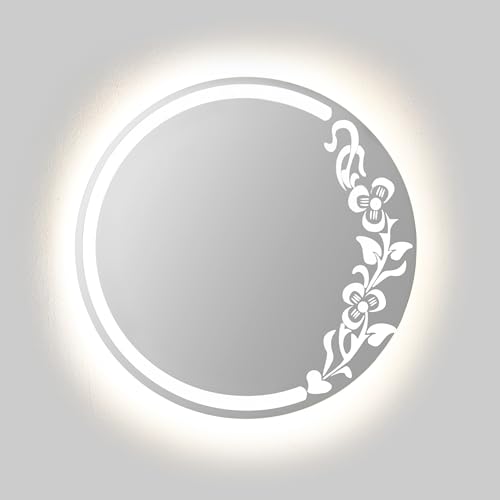 - تصميم أنيق: مراية حائط دائرية مزينة بنقوش زهور فنية تضيف لمسةً راقيةً وأنيقةً لأي حمام أو طاولة تجميل أو غرفة مكياج.