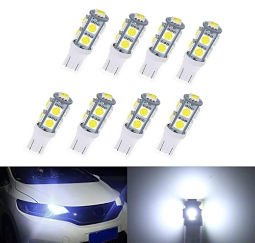 Generic - لمبات LED اسفين، T10 W5W 194 168 ابيض ساطع 5050 9SMD، لمبات داخلية بديلة، لمبات للتابلوه والقبة والخريطة والباب ولوحة الترخيص في السيارة - تيار مستمر 12 فولت - أبيض 9 ليد - 8 قطع - من كابر تريد