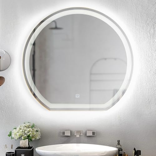 Generic - مراة تعمل باللمس باضاءة LED بيضاء 80 × 80 سم - مراة عصرية مضيئة تثبت على الحائط للحمام والتزيين مع مستشعر تحكم باللمس لغرفة النوم ومنطقة الملابس